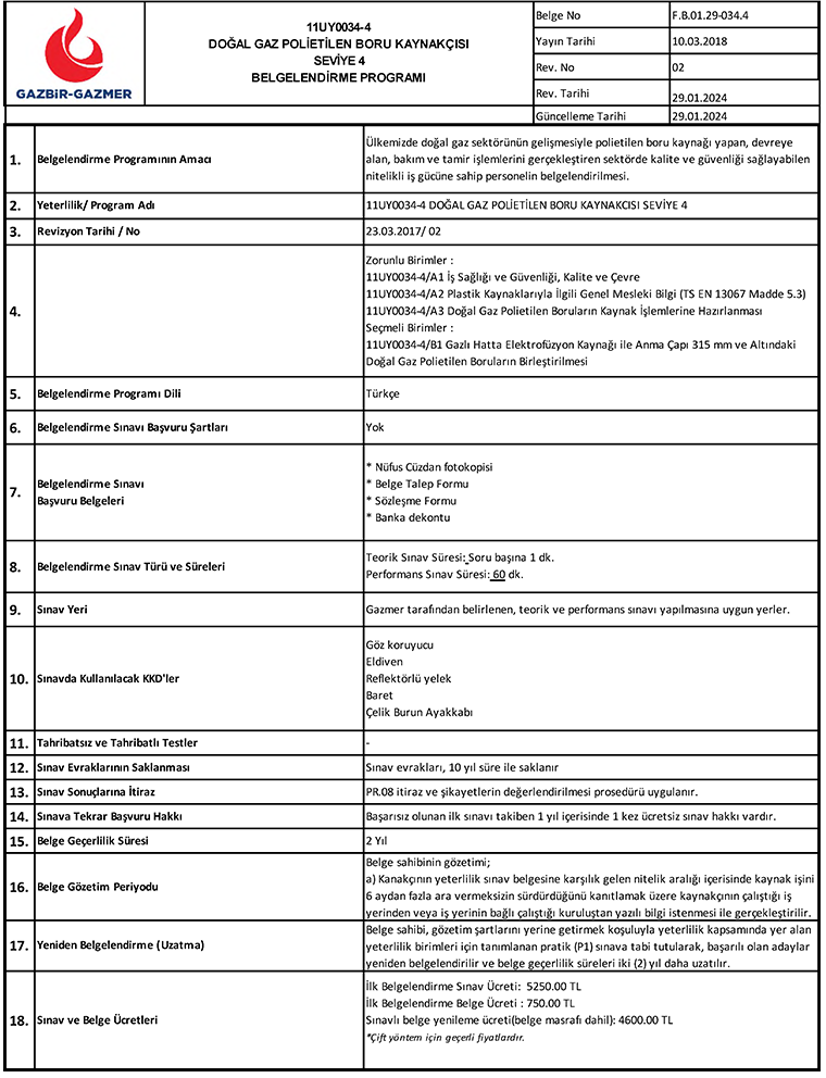 DOĞAL GAZ POLİETİLEN BORU KAYNAKÇISI SEVİYE 4 PROGRAMI