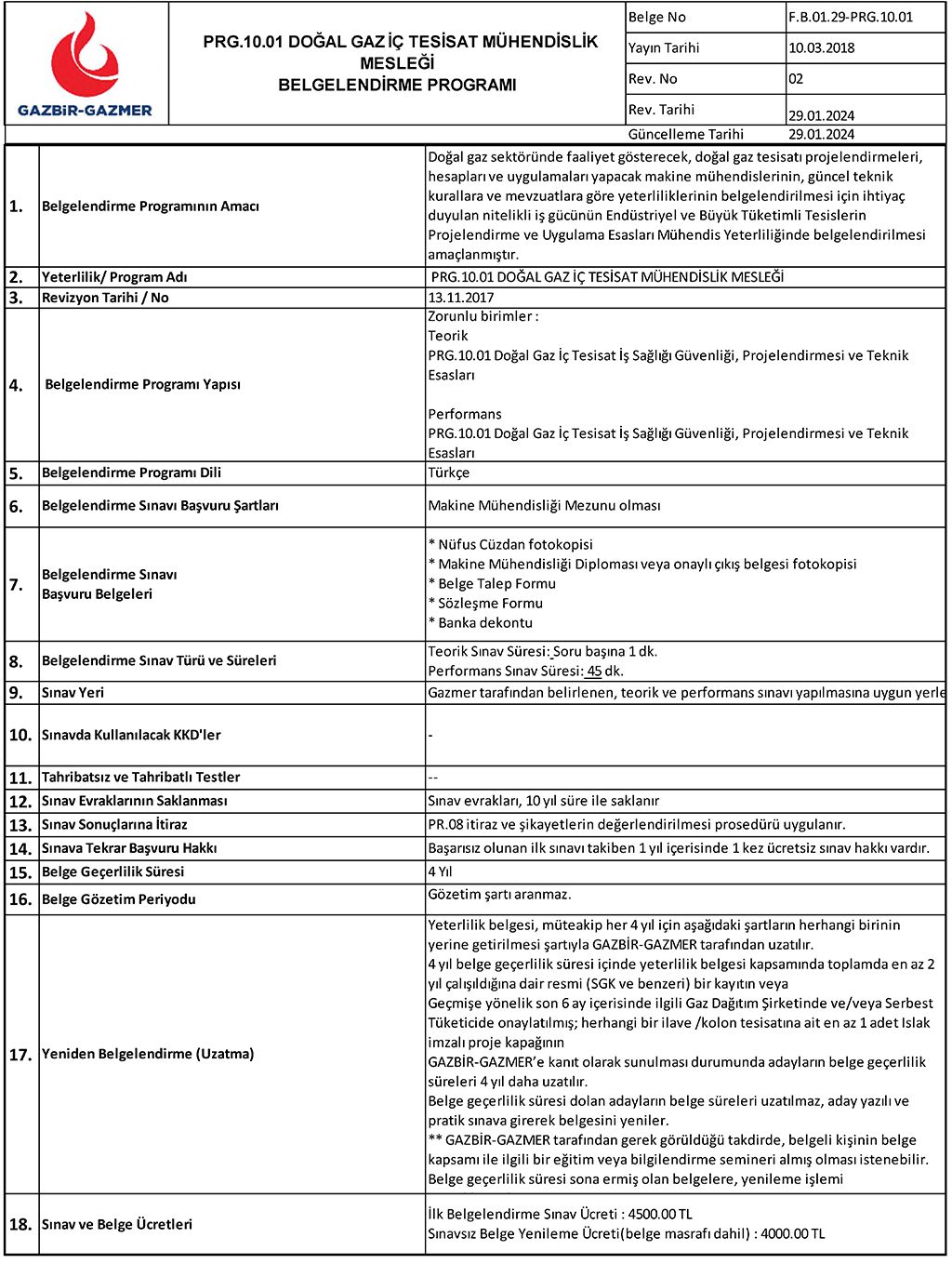 DOĞAL GAZ İÇ TESİSATI MÜHENDİSLİK YETERLİLİK PERSONELİ SERTİFİKA PROGRAMI